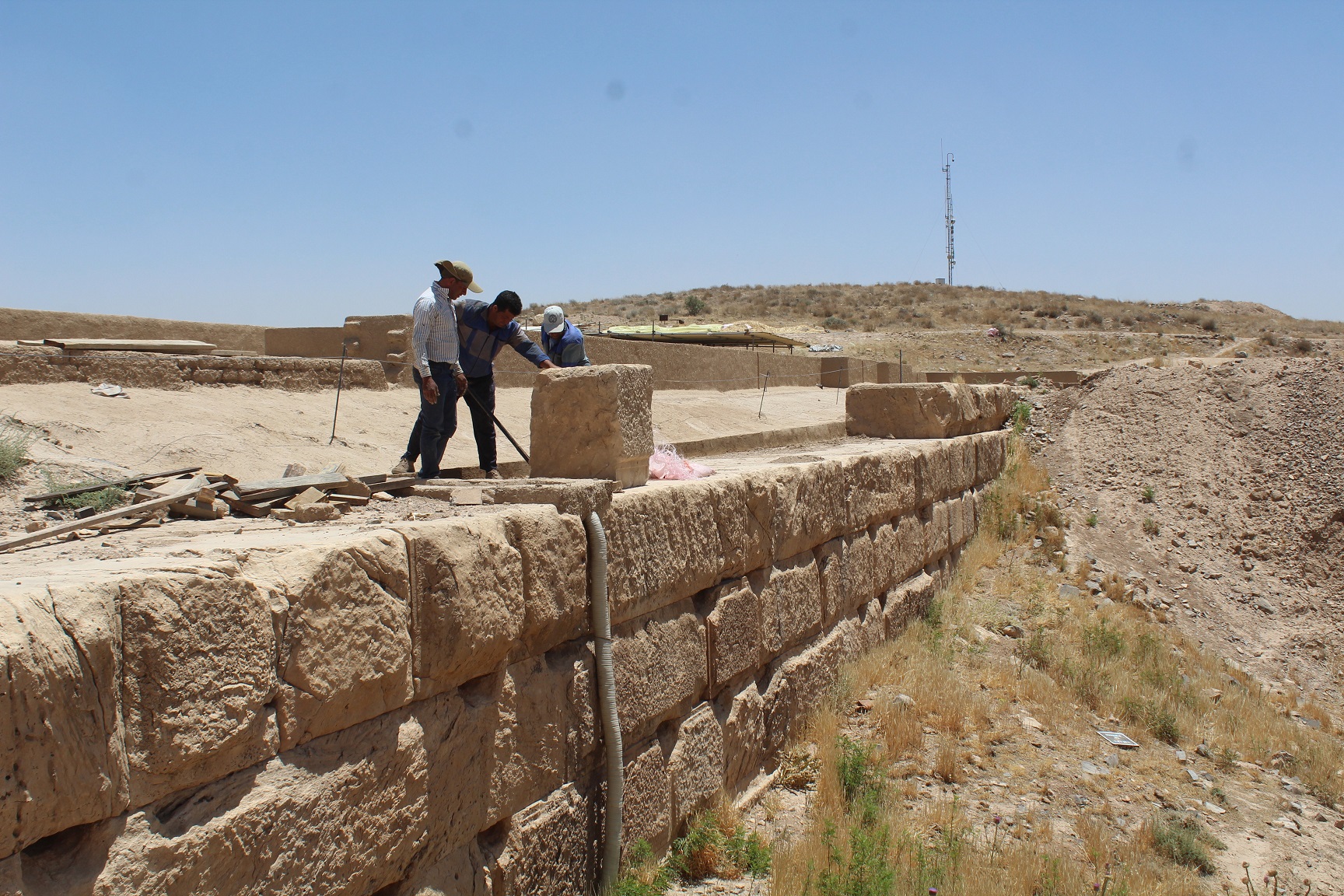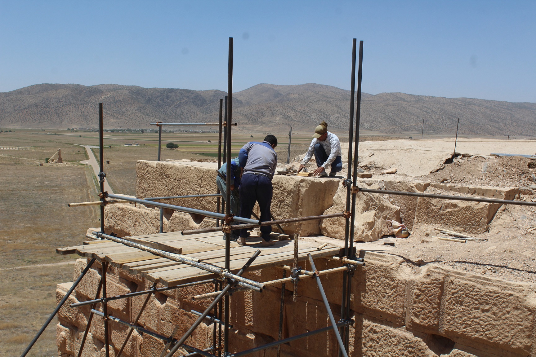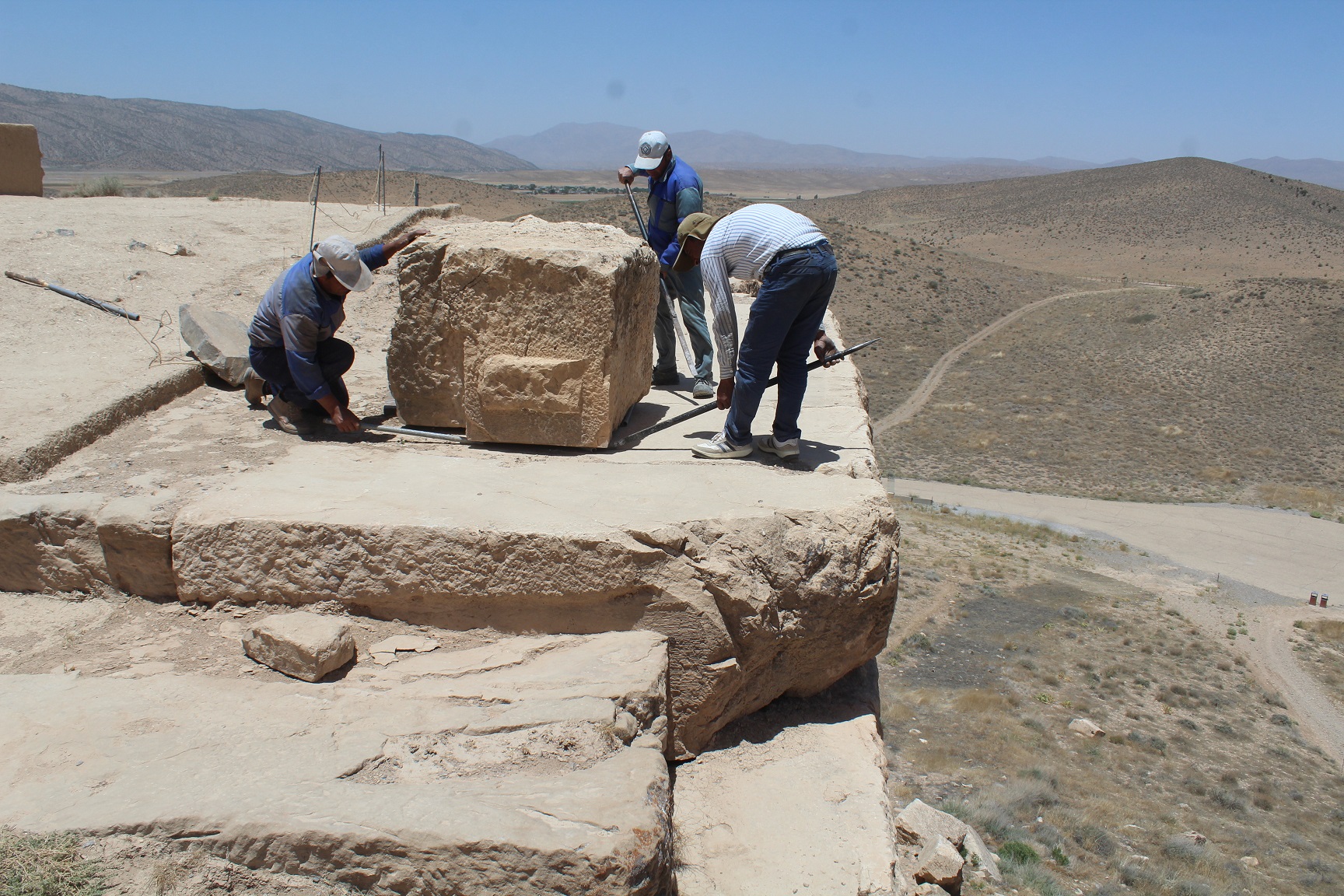 افشین ابراهیمی، مدیر پایگاه میراث جهانی پاسارگاد با اعلام این خبر گفت: صفه تل تخت را باید جزء اولین نمونه های صفه سازی در دوره هخامنشی دانست. در این روش با به کارگیری بلوک هایی در ابعاد بزرگ بر فراز تپه، اقدام به ساخت سکویی سترگ شده که علاوه بر ایجاد سازه ای با هیبت، خود به عنوان شالوده سازه های بالادستی مورد استفاده قرار می گرفته است. صفه تل تخت البته بر اثر گذر زمان و تحت تاثیر عوامل محیطی و انسانی در خیلی از قسمت ها دچار تخریب و فروپاشی شده است، هرچند همچنان شکوه و عظمت گذشته خود را به رخ می کشد. هم در سال های گذشته و هم اخیراً اقدامات حفاظتی درخوری بر فراز صفه انجام گرفته است، لیکن ساماندهی و استحکام بخشی جداره های سنگی آسیب دیده، فرایندی بسیار مهم نشان می دهد که برنامه ریزی ویژه ای را می طلبد. عجالتاً تا فراهم شدن شرایط لازم برای چنین مداخله ای که هر چه پیش می رویم اضطرار خود را بیشتر نمایان می سازد، می طلبد نسبت به ساماندهی و بازچینی تعدادی از بلوک های سنگی که در وضعیت نامناسبی قرار دارند، اهتمام ورزید. بررسی های میدانی، ضرورت انجام چنین اقدامی را حداقل در پنج نقطه از صفه تل تخت مسجل نموده است. بر این اساس محل اصلی هر بلوک از روی ابعاد بلوک های ردیف های هم جوار مشخص گردیده و پس از پاکسازی فضای مورد نظر، چنانچه بلوک های ردیف زیرین توان تحمل بار وارده را داشته باشند، بلوک آوار شده بدون هر گونه دخالتی در جای خود قرار می گیرد. در مواردی هم که بلوک های زیرین دچار آسیب های مختصری باشند، با بکارگیری ملات آهکی (که از اختلاط درصد مناسبی از آهک هیدراته، ماسه بادی و پودر سنگ ساخته شده است) و قطعات کوچکتر سنگ های همنوع (که پیشتر جمع آوری گردیده و در محل هایی موسوم به باغچه سنگ نگهداری می شوند)، اقدام به استحکام بخشی آنها می گردد تا بتوان بلوک آواری را با اطمینان در جای خود قرار داد. برای جابجایی این بلوک ها که عموما وزن هایی بین 2 تا 5 تن دارند، با استفاده از لوله های داربست و جرثقیل دستی ده تنی، اقدام به ساخت بالابر در ابعاد و اندازه دلخواه گردیده است. این مرحله از اقدامات ساماندهی در صفه تل تخت، از ابتدای اردیبهشت ماه سال جاری آغاز گردیده و پیش بینی می شود تا پایان خرداد ماه به طول انجامد.